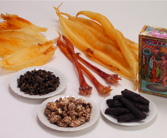 中国ではその希少価値から「乾貨」と呼ばれ、中国料理の多彩な素材のなかでも、もっとも重要なものです。なまこや燕の巣、また魚肚や魚唇など、高級宴席に是非ご使用ください。
